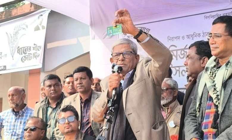 বিএনপির মহাসচিব ও ঠাকুরগাঁও-১ আসনের বিএনপি মনোনীত প্রার্থী মির্জা ফখরুল ইসলাম আলমগীর বলেছেন, এখন জামায়াতে ইসলামী খুব কথা বলছে। তারা একাত্তর (১৯৭১) সালে পাকিস্তানের হানাদার বাহিনীকে সহযোগিতা করেছিল। আমাদের পালিয়ে যেতে হয়েছিল। আমরা চব্বিশ ভুলবো না, একাত্তরও ভুলবো না। আমরা যুদ্ধ করে স্বাধীনতা পেয়েছি। যুদ্ধ করেছি একটা স্বাধীন, গণতান্ত্রিক ও অসাম্প্রদায়িক বাংলাদেশ গড়ার জন্য। গতকাল বৃহস্পতিবার দুপুরে সদর আসনের ফাড়াবাড়ি স্কুল মাঠে নির্বাচনী গণসংযোগে এসব কথা বলেন তিনি। জামায়াতের প্রার্থীকে না জেনে কথা না বলার আহ্বান জানিয়ে মহাসচিব বলেন, এ সরকার নিরপেক্ষ সরকার। ভোটের মাধ্যমে যারা নির্বাচিত হবে, তারা সরকার গঠন করবে। এবার সুন্দর নির্বাচন হবে। মন যাকে চাইবে, তাকেই ভোট দেবেন। জেলার বড় বড় সড়ক, কলেজ-মাদরাসার উন্নয়ন, ভুট্টা চাষ, বরেন্দ্র টিউবওয়েল আমরা করেছি। মির্জা ফখরুল বলেন, হিন্দু-মুসলিমের মধ্যে সম্প্রীতি স্থাপন করতে চাই। যুবকদের প্রশিক্ষণের ব্যবস্থা করে বিদেশে পাঠাতে চাই, যাতে তারা স্বাবলম্বী হয়ে আয় করতে পারে। দক্ষিণাঞ্চলে প্রত্যেক ঘরে ঘরে একজন করে বিদেশে থাকে। বাইরে গেলে এলাকার উন্নয়ন হবে। তথ্য প্রযুক্তির প্রশিক্ষণের ব্যবস্থা করতে চাই। কৃষি ভিত্তিক শিল্প গড়ে তুলতে চাই। বিমানবন্দর চালুর গুরুত্বের আগে আয় বাড়ানোকে গুরুত্ব দেব। বিশ্ববিদ্যালয়-মেডিকেল কলেজ, প্রকৌশলী কলেজ করতে চাই। সবাই এক হলে কাজগুলো করা সম্ভব হবে। সনাতন ধর্মাবলম্বীদের উদ্দেশে তিনি বলেন, আপনাদের ভয় কাজ করে। ভয় করবেন না, আপনি এ দেশের নাগরিক, আমিও এদেশের নাগরিক। আপনাদের কোনো ক্ষতি হতে দেব না। কেউ আপনাদের ক্ষতি করবে না। আপনাদের সুরক্ষার দায়িত্ব রাষ্ট্রের, আমাদের সবার। এটা আপনাদের দেশ, আপনাদের মাটি। এটা আপনার জমি, আপনার দেশ। মির্জা ফখরুল বলেন, আমি আপনাদের পুরানা মানুষ। পরীক্ষিত মানুষ, এটা আমার শেষ নির্বাচন। এবার ধানের শীষে ভোট দিয়ে কাজ করার সুযোগ দেবেন। ভোট আপনাদের আমানত, এটার খেয়ানত করবো না। আমরা বাপ-দাদার জমি বিক্রি করে রাজনীতি করি। সততার সঙ্গে কাজ করেছি, ভবিষ্যতেও করবো।