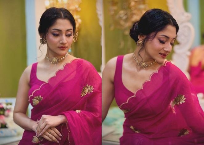 গোলাপি শাড়িতে নজর কাড়লেন পূজা চেরি