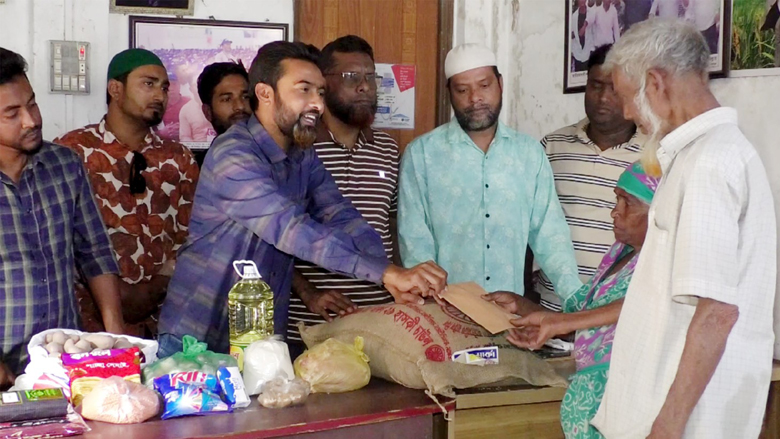 বৃহস্পতিবার বিকালে শহরের বাগেরহাটা বটতলা মোড়ে ব্যক্তিগত কার্যালয়ে যুবদল নেতা সোহেল রানা খান চাঁন মিয়া ও কুলসুম বেগম দম্পত্তির দায়িত্ব নিয়ে তাদের দুই মাসের খাদ্য সহায়তা দেন। এ সময় ওই বৃদ্ধ দম্পত্তির হাতে এক বস্তা চাল, দুই লিটার তেল, ডাল, চিনি, আদা, হুইল পাউডার, সাবান, পিয়াজ, আলু, সেমাই, মুরগী, শাড়ি, লুঙ্গিসহ নিত্য প্রয়োজনীয় দ্রব্যাদি ও নগদ অর্থ তুলে দেয়া হয়।