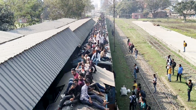 জামালপুরে ভোট শেষে কর্মস্থলে ফিরতে বাস-ট্রেনে যাত্রীদের ভীড়